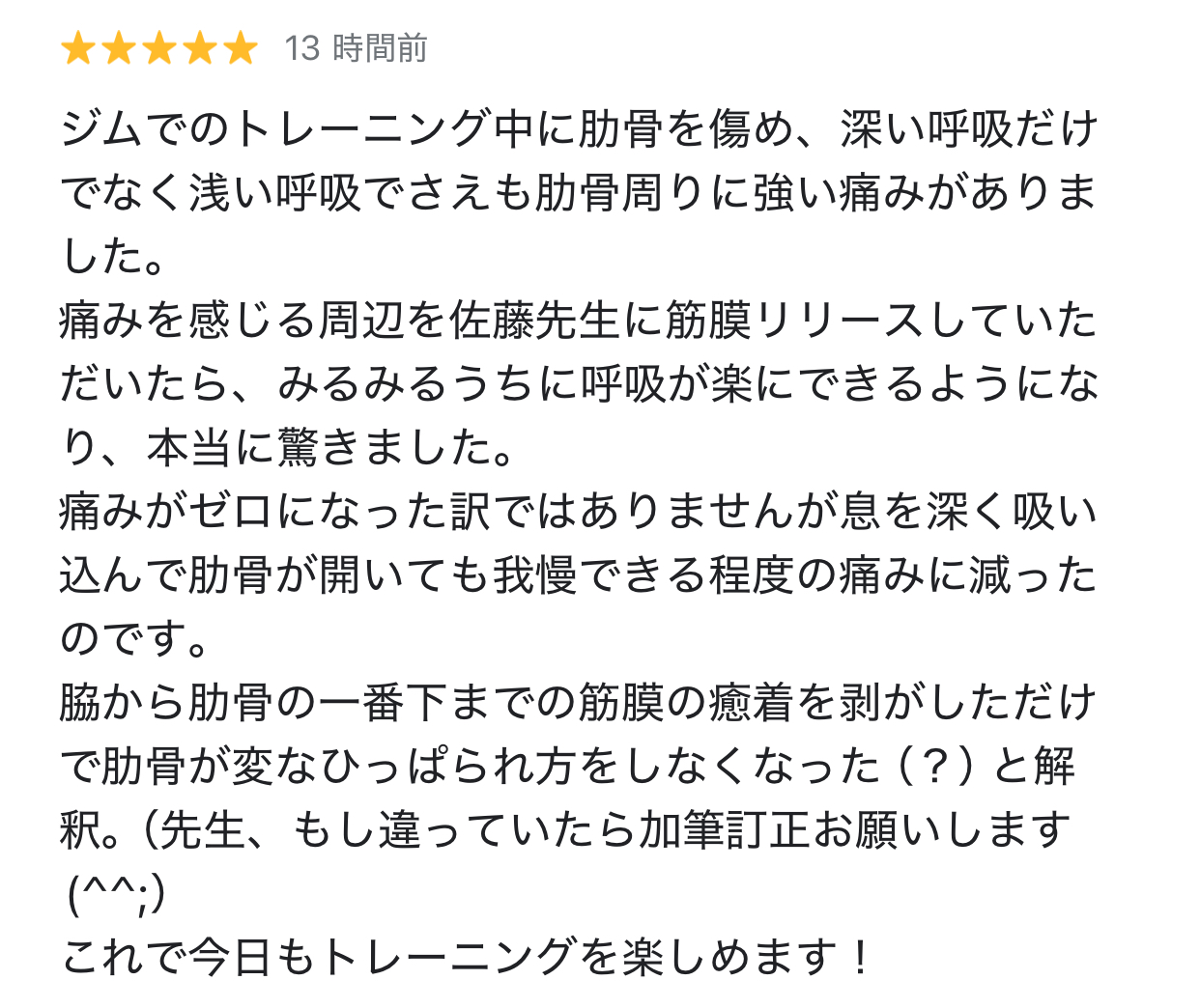 - スムーズなトレーニング継続:トレーニング中にコリや違和感等が発生しても癒着を取ることで多くがその場で無害化しますので、トレーニングの継続を強力にサポートします。