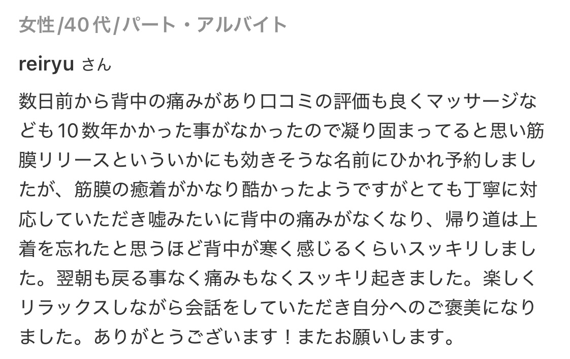 - オールハンド筋膜リリース整体へ変更 30分 1,100円(税込)